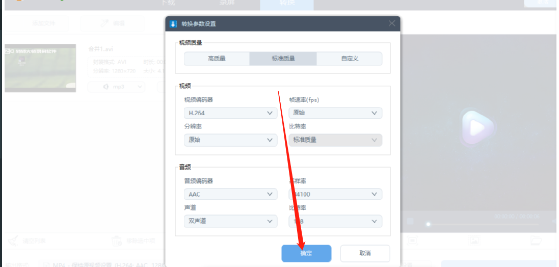 7.点击这个设置按钮之后就会打开一个设置视频转换参数的界面了,用户根据自己的需求来对这些参数进行调整即可。