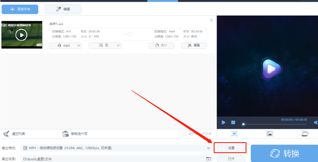 6.紧接着下一步我们还可以点击界面中的设置按钮,在输出格式选项的右边,如下图中所示。