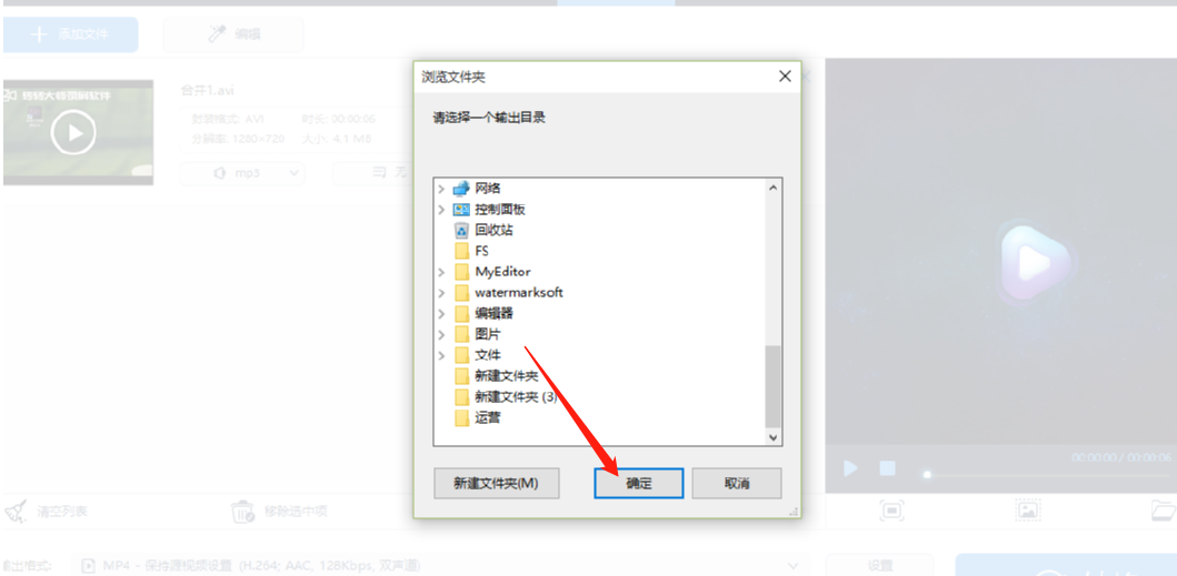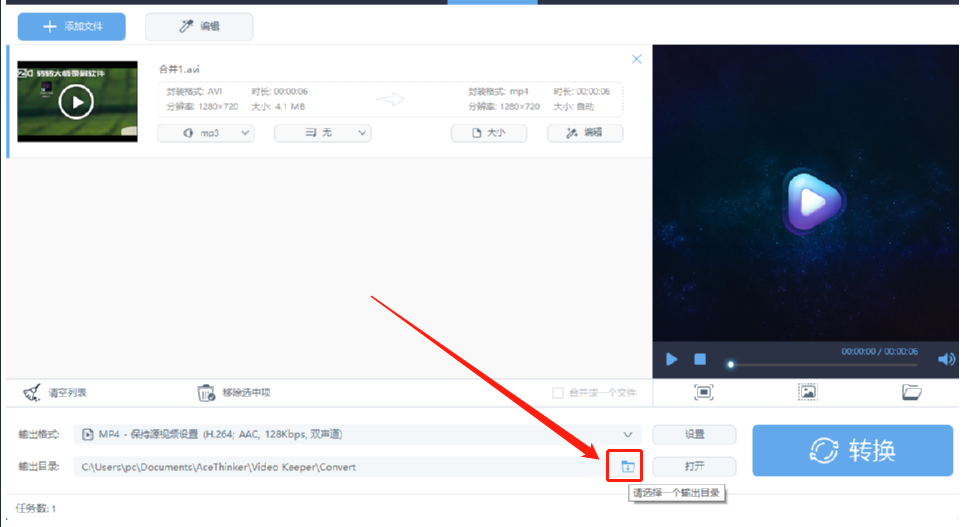 4.点击选择好MP4格式之后,下一步我们需要点击输出目录选项右边的文件夹图标,点击之后可以自定义选择输出目录。