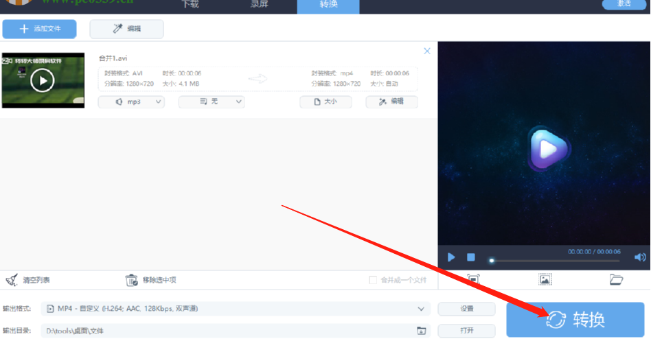 8.最后在完成上述步骤之后,我们点击软件主界面右下角的转换这个按钮就可以开始转换视频文件格式的操作了。