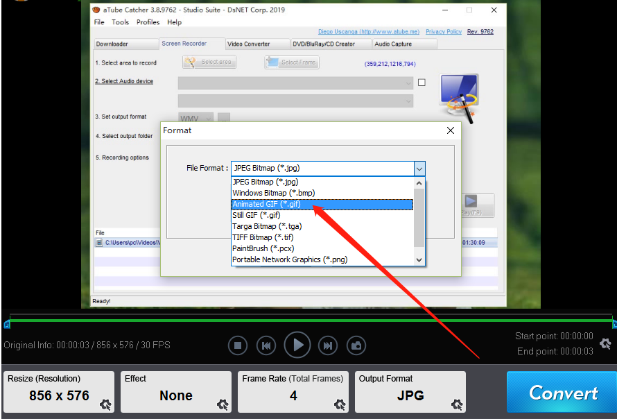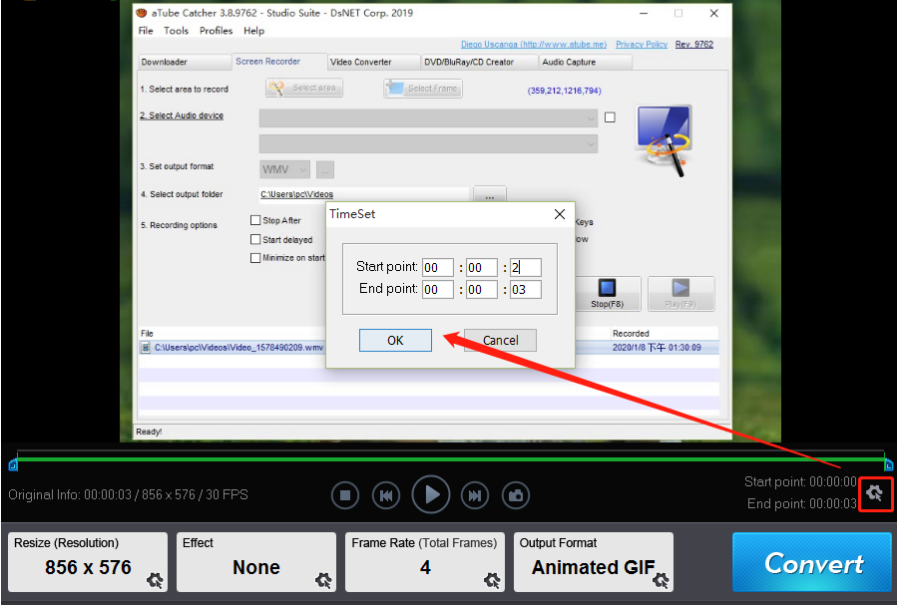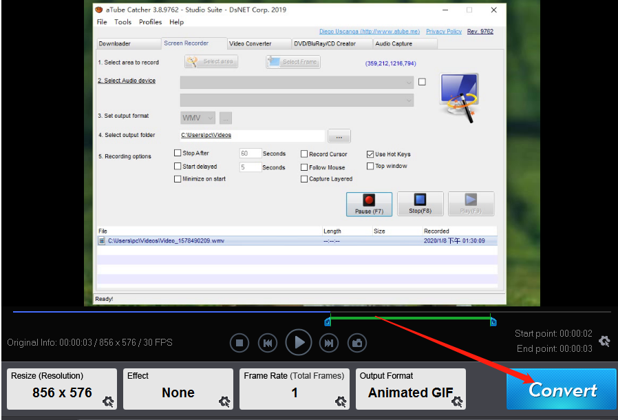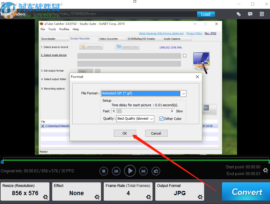 7.设置好转换为GIF的时间段之后,最后一步点击界面右下角的Convert这个转换按钮就可以开始转换操作了。