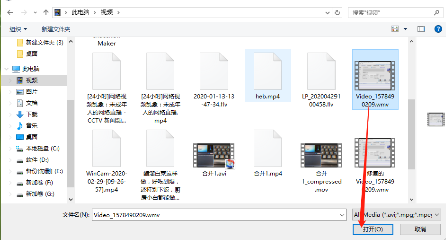 2.点击选择加载文件之后会打开一个选择文件的界面,在这个界面中我们选中目标视频文件之后点击下方的打开按钮。