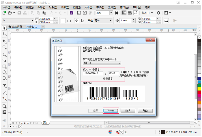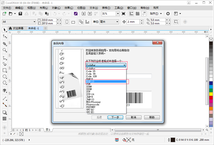 今天我们以,生活中比较常见的EAN条形码中的“EAN-13”(主要应用于超市和其它零售业)为例,给大家详细讲解如何用CorelDRAW X8制作条形码。