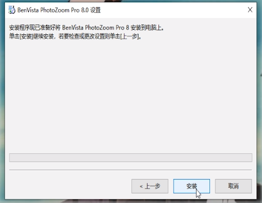 弹出安装准备窗口,若要检查或更改设置则单击上一步更改,点击安装,PhotoZoom Pro 8 简体中文 【专业版 + Win】就下载安装成功了。