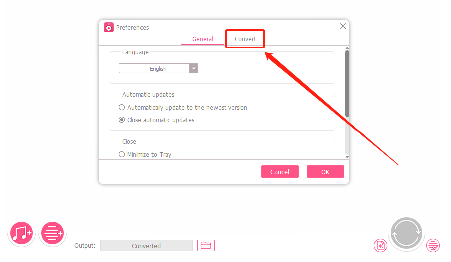 3.点击上一个步骤中所说的选项之后,就会打开软件的设置界面了,然后我们需要点击Convert这个转换选项,切换到转换设置界面。