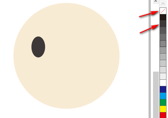 3、再用椭圆形工具绘制出一个眼睛,填上一个百分之90灰的颜色,还是一样右键点X去掉轮廓。