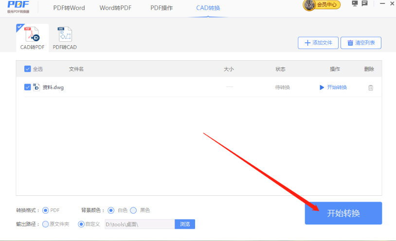 5.设置好输出路径之后,最后一步我们点击转换功能界面右下角的开始转换按钮就可以开始转换文件格式的操作了。