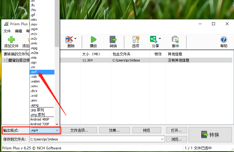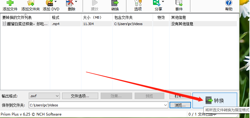Prism视频文件转换器将MP4转换成SWF的操作步骤