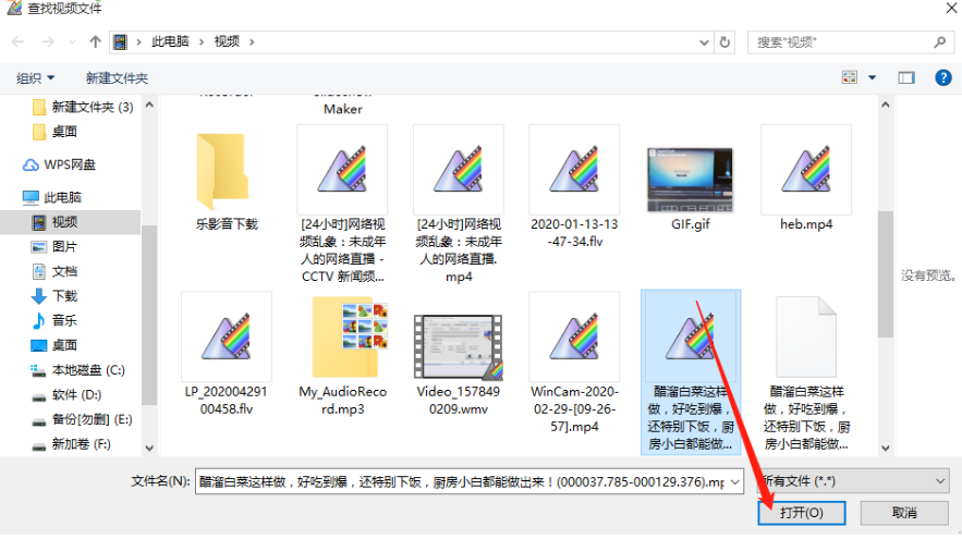 2.点击添加文件按钮之后,我们在出现的选择文件界面中,选中目标视频文件之后,点击右下角的打开按钮即可。