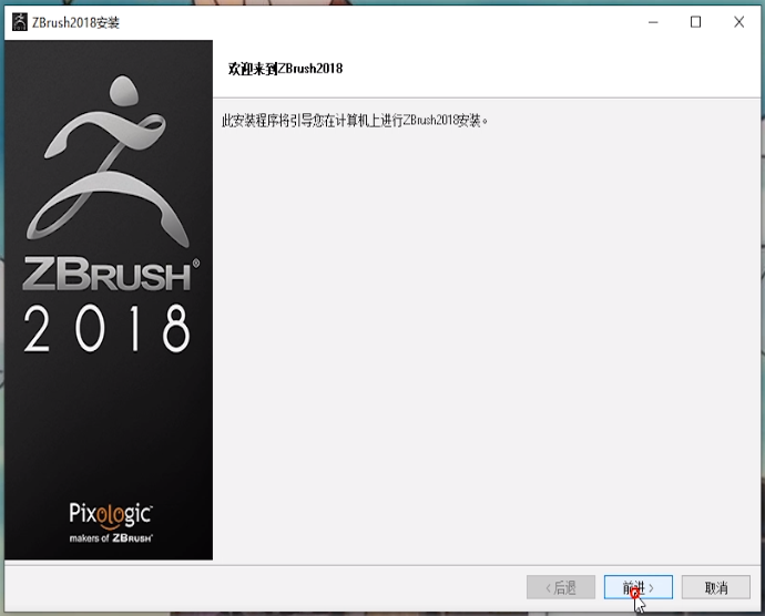 下载完成之后点击桌面上的ZBrush_2018Installer安装包,弹出语言选择小窗,软件自动选择简体中文,点击确定