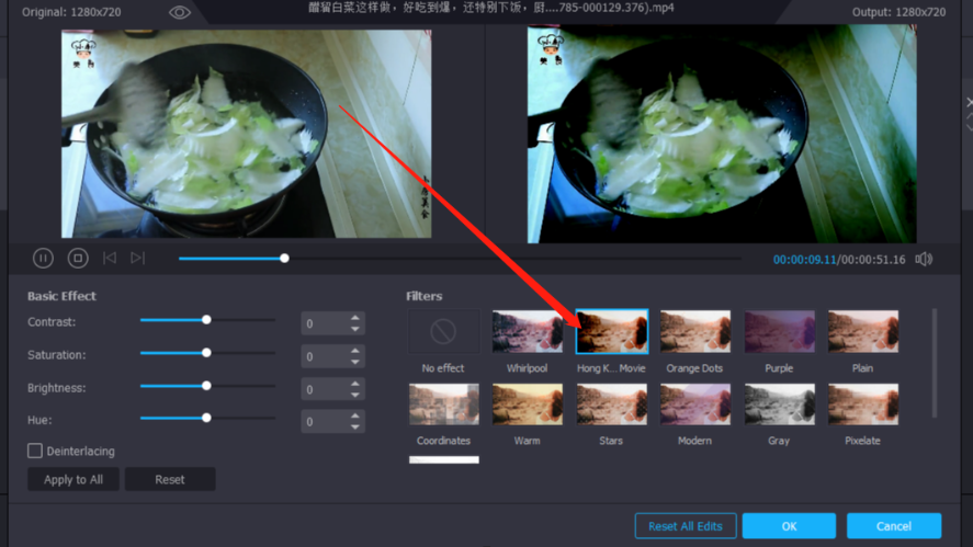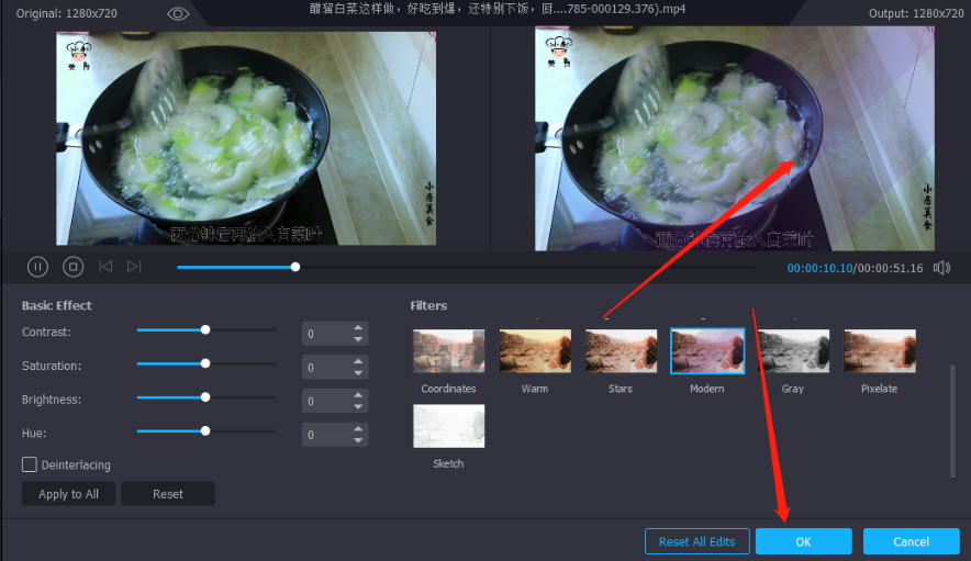 5.我们根据需要选择这些特效之后,在界面右边可以查看特效添加到视频中的效果,满意的话点击下方的OK按钮。
