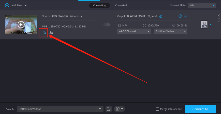 6.点击OK按钮之后特效设置就保存成功了,然后我们点击界面右下角的Convert这个转换按钮就可以将添加特效之后的视频转换保存了。