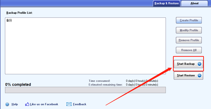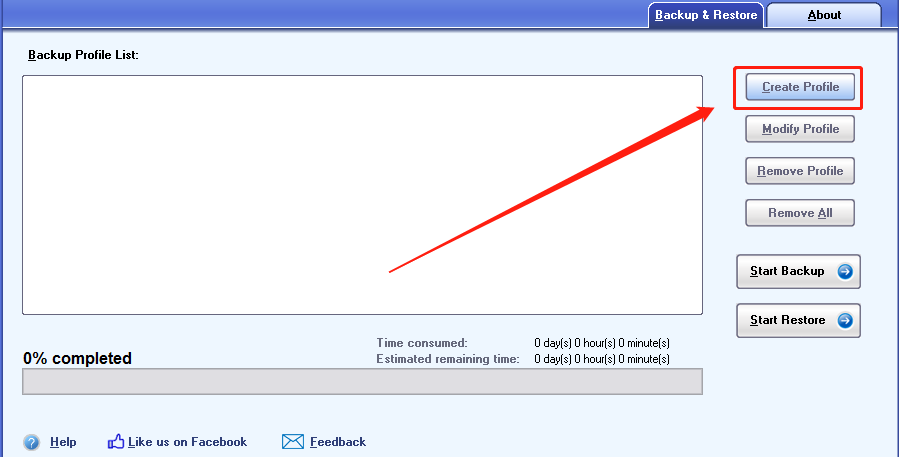 1.首先第一步我们打开软件之后,点击界面右边的Create Profile这个创建一个项目的按钮,准备创建备份任务。