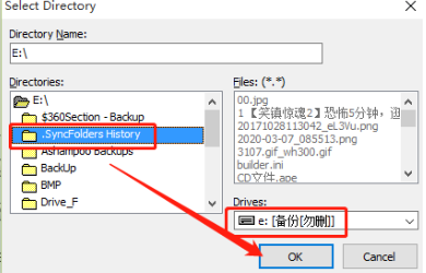 5.选择好备份储存的磁盘之后我们选择该磁盘中想要保存备份文件的文件夹,选中之后点击右下角的OK按钮。