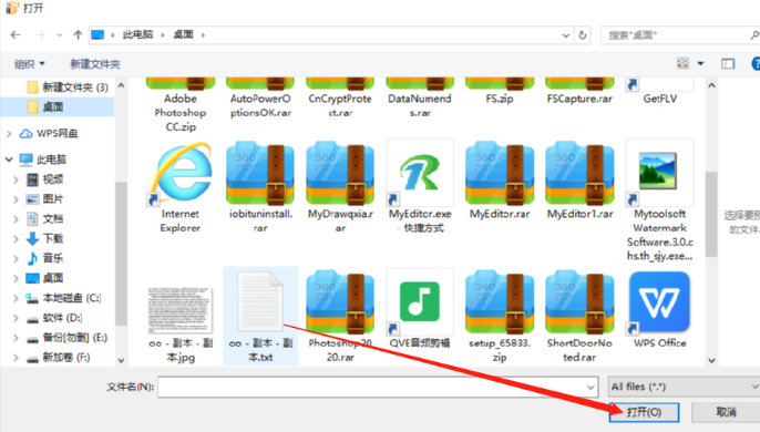 3.点击添加文件按钮之后就会打开一个选择文件的界面,我们在这个界面中选中想要备份的文件之后,点击右下角的打开按钮。