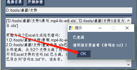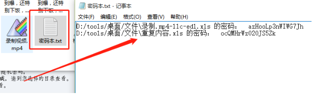 5.之后打开Excel文件所在的文件夹,在其中就可以看到加密之后储存密码的密码本.txt文件,双击打开即可查看Excel文件的加密密码。
