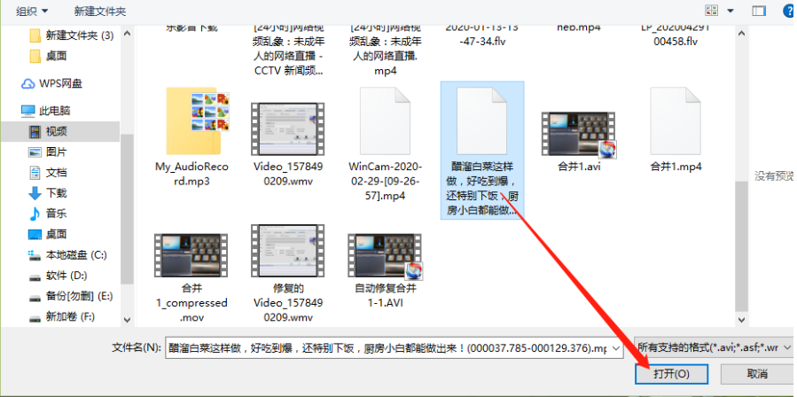 2.点击添加文件按钮之后在出现的选择文件界面就可以选择想要处理的视频文件了,选择之后点击右下角的打开按钮即可。