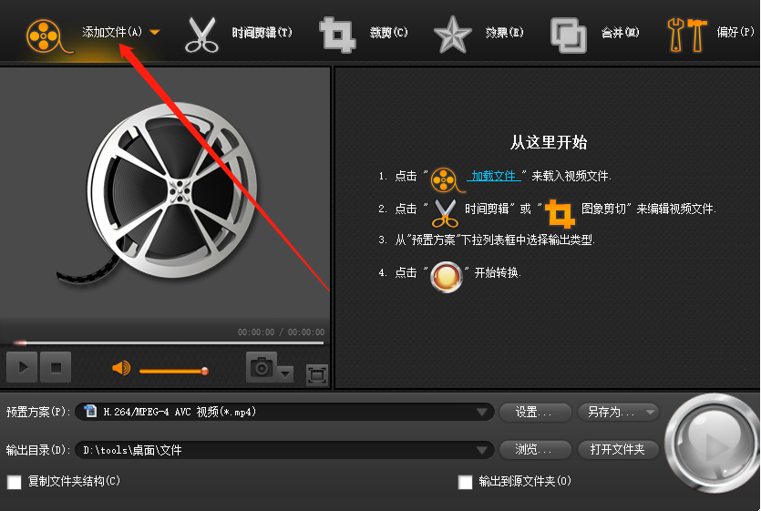 1.首先第一步我们打开软件之后,在界面的左上角找到添加文件选项并点击,然后准备添加想要处理的视频。