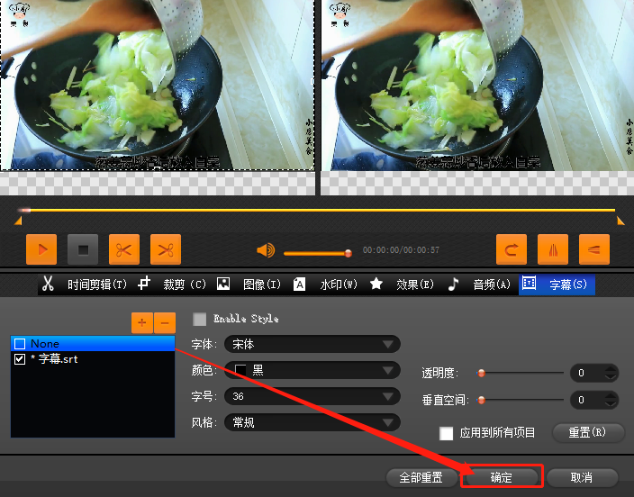 6.选择好想要添加的字幕文件之后,在编辑界面点击右下角的确定按钮保存字幕的添加操作。
