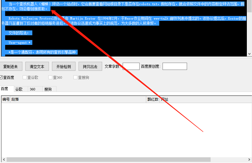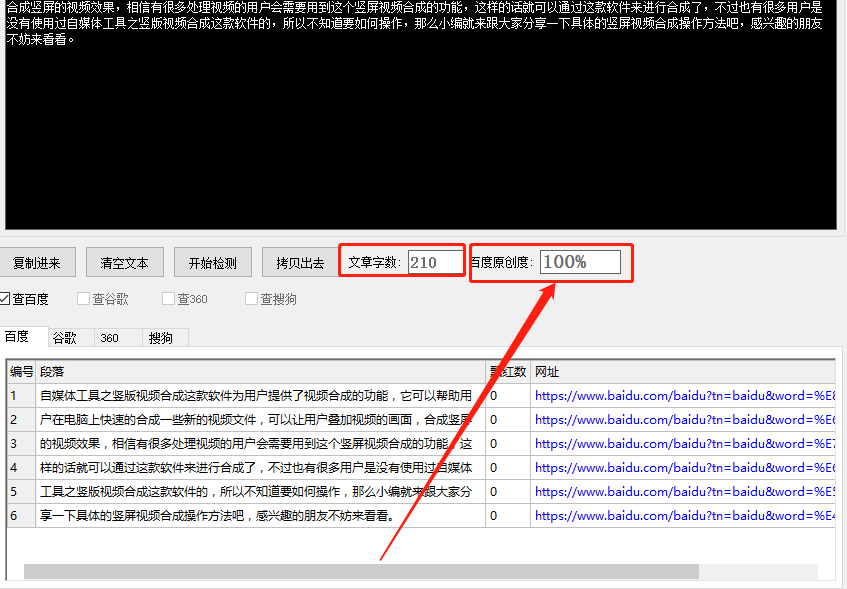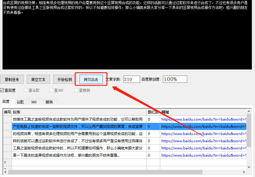 4.经过上述步骤之后检测文章百度原创度的操作就完成了,这个原创度结果还是比较真实有效的,检测之后点击拷贝出去就可以将检测之后的文章进行下一步使用了。