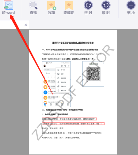3.点击打开按钮之后在软件界面就可以看到想要处理的PDF文件了,然后点击上方的转Word功能图标。