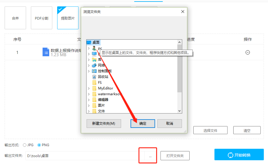 4.找到输出方式之后我们点击界面下方输出文件夹右边的三点按钮,点击之后在出现的界面可以选择想要保存提取图片的位置。