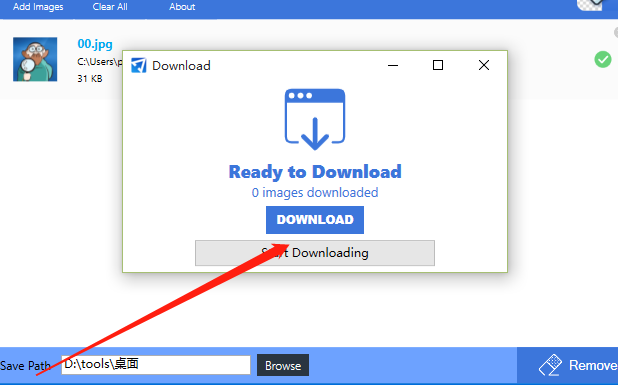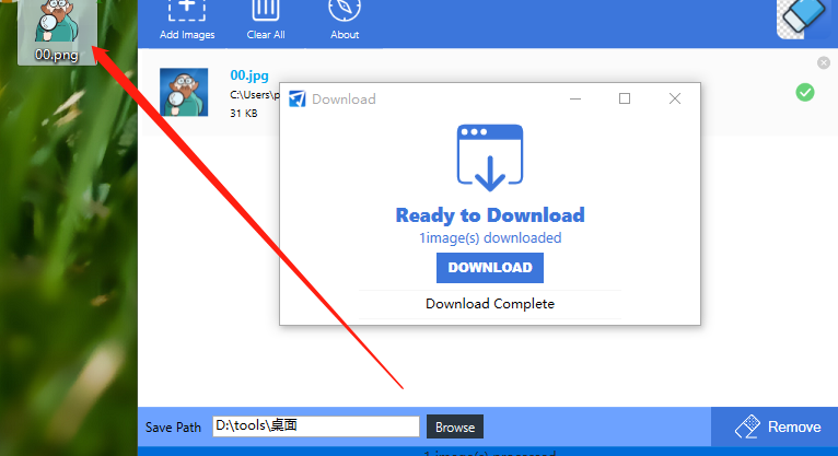 5.点击这个按钮之后等待一会,软件界面中就会显示下载图片的窗口,我们点击下载按钮将抠好的图片下载到选择的储存路径中。
