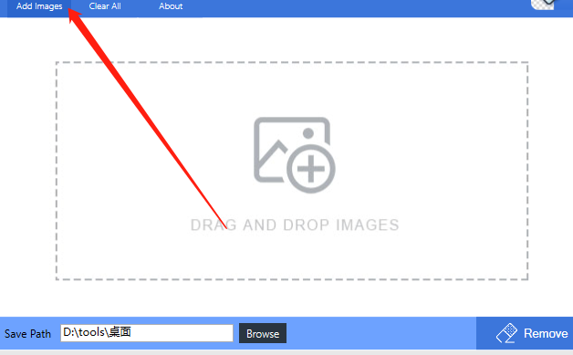 1.首先第一步我们点击打开软件之后,在软件界面的左上角找到Add images这个添加图片按钮,点击之后准备添加图片。