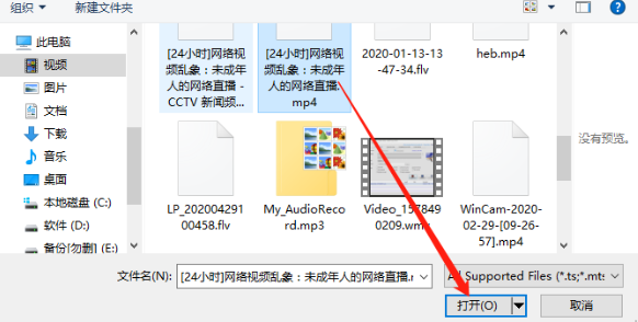 2.点击添加文件之后下一步在出现的文件选择界面中,我们选中想要增强视频效果的视频之后点击打开按钮。