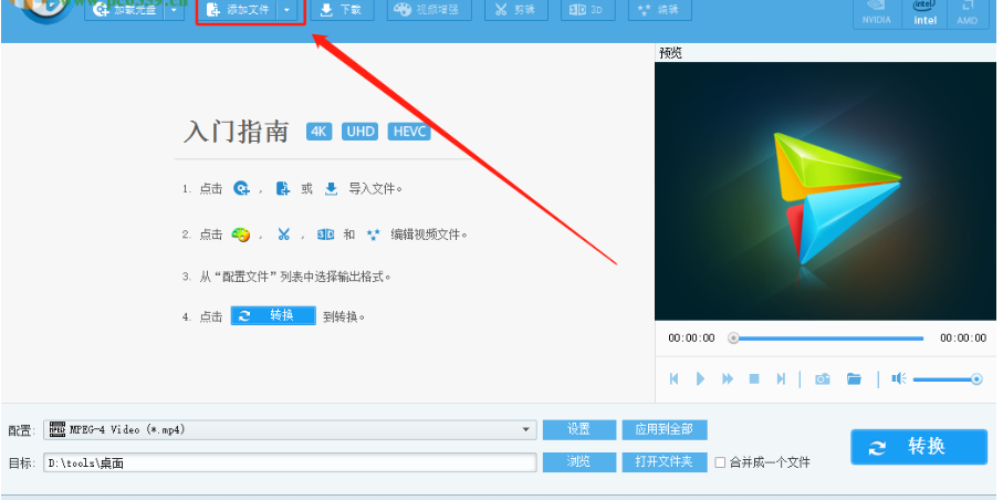 1.首先第一步我们打开软件之后点击上方的添加文件按钮,点击之后可以在出现的位置选项想要添加的视频文件。