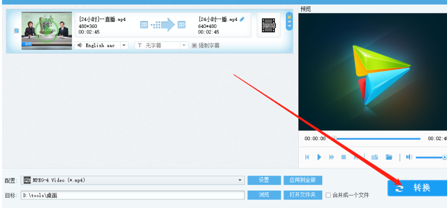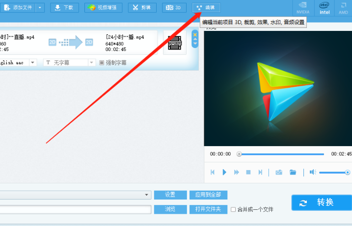 6.点击应用按钮就将增强的效果应用到视频当中了,返回到软件主界面之后点击界面右下角的转换按钮即可将增强之后的视频转换保存下来。
