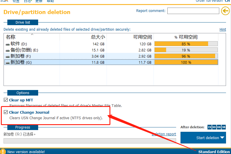 4.另外下方的这个Clear Change Journal这个选项的意思是“清除活动的USN更改日志(仅限NTFS驱动器)”,同样的需要勾选这个选项。