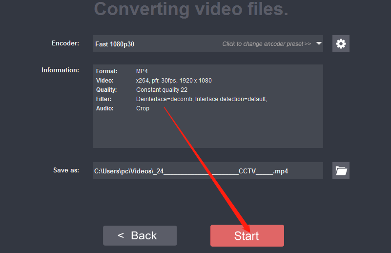 7.点击OK按钮之后回到下图所示的界面,然后点击界面中的Start这个开始按钮就可以开始裁剪视频文件了。