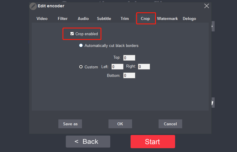 5.点击这个设置界面之后,我们在出现的选项中选择Crop这个裁剪功能,然后勾选Crop enabled这个选项。