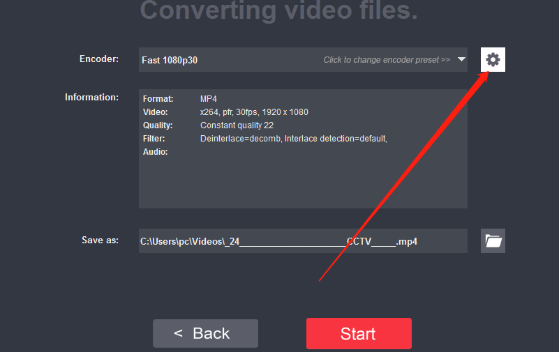 4.点击下一步进入到视频的参数设置界面之后,我们点击界面中的齿轮图标即可打开设置视频参数的功能界面。