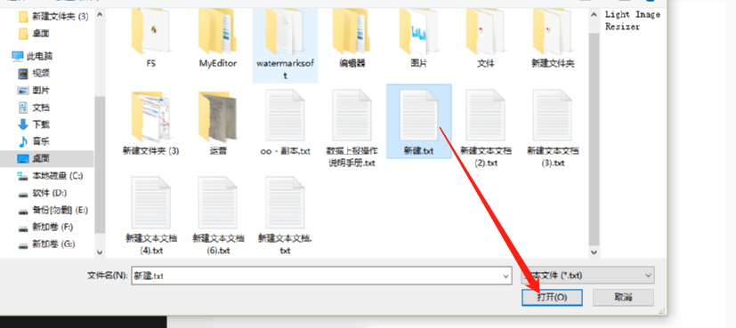 2.点击打开文本文档的话就会出现一个选择文件的界面了,在这个界面中我们选中目标文本文件之后点击右下角的打开按钮。