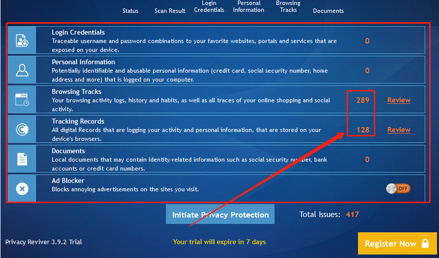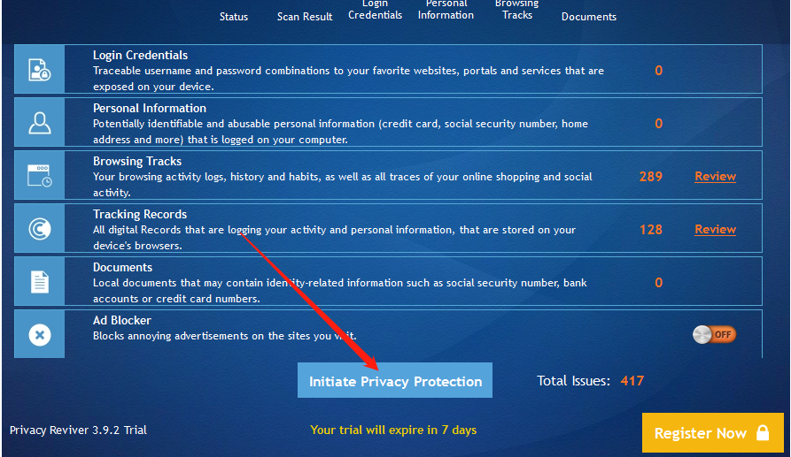 4.最后一步我们只需要点击界面中的Initiate Privacy Protection这个按钮来启动保护电脑隐私数据的功能了,如下图中所示。