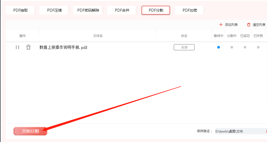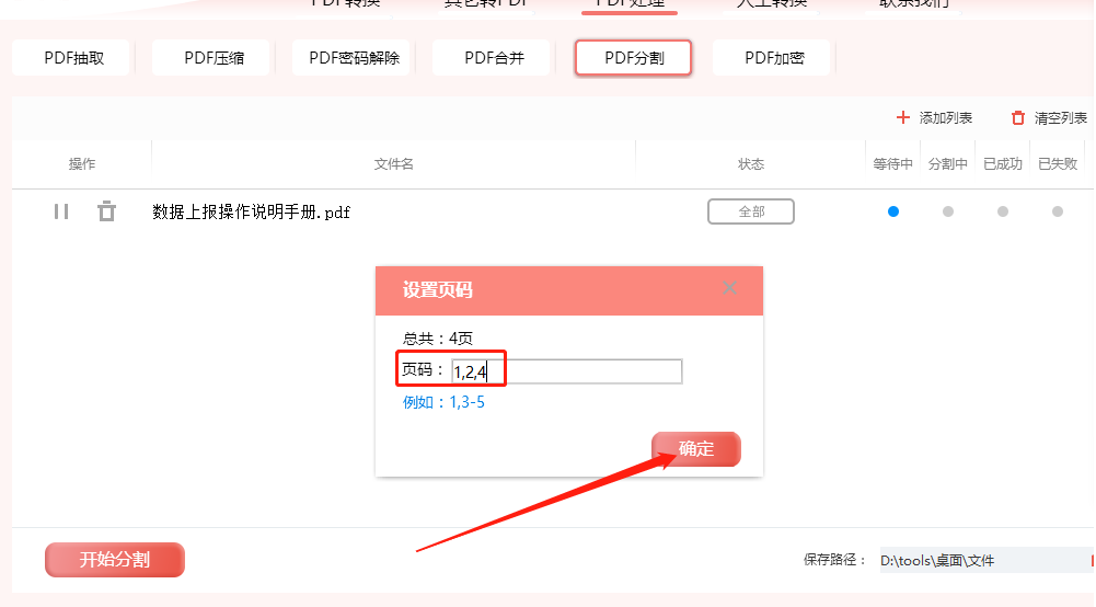 6.点击确定按钮之后我们就设置好自己想要分割PDF文件的页码了,设置完成之后点击界面左下角的开始分割按钮即可开始分割PDF文件的操作。