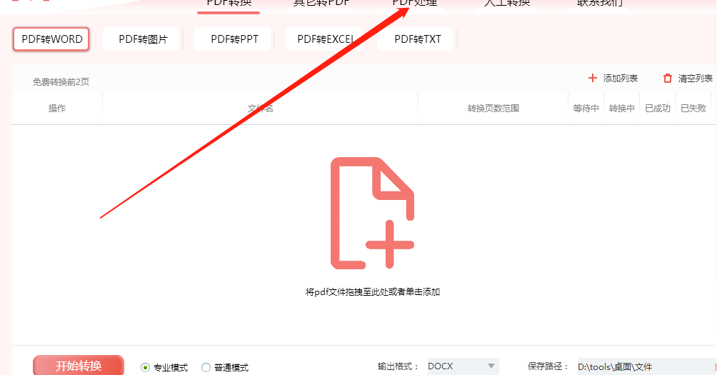 1.首先第一步我们打开软件之后在软件界面中点击上方的PDF处理功能选项,切换到PDF处理界面当中。
