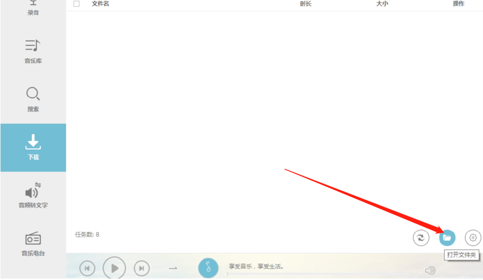 6.最后等到下载完成之后,在已完成界面可以看到下载好的音频,然后我们点击右下角的打开文件夹按钮即可查看下载好的音乐文件。