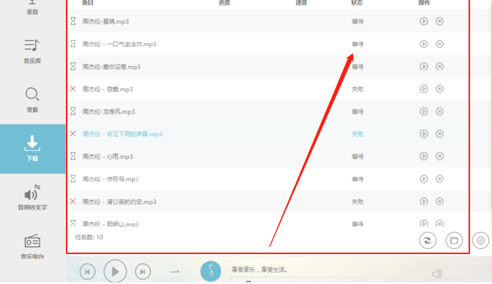 5.点击添加到下载之后,我们切换到左边的下载列表中就可以看到正在下载的一些音乐了,如下图中所示。