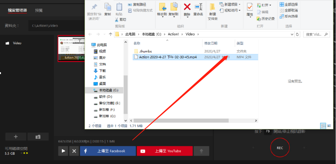 7.最后点击这个开启输出资料夹选项就会打开录制的视频文件保存的文件夹了,用户可以在这里找到录制好的视频文件。
