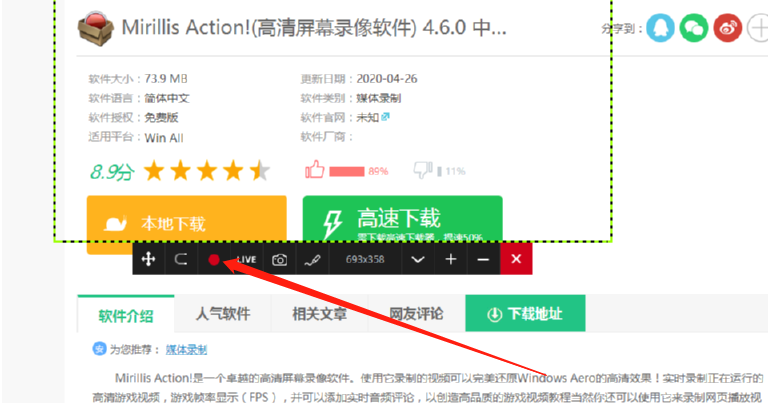 您的位置:首页 >使用Mirillis Action选取区域录制电脑屏幕的方法步骤