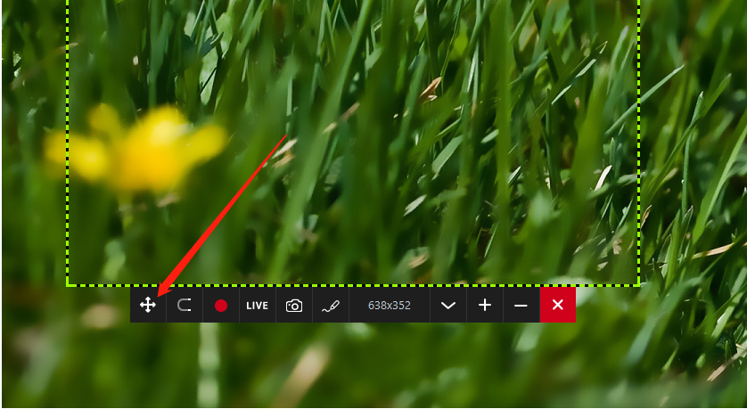 3.设置好录制的区域并且移动到自己想要录制的位置之后,我们点击选框下排功能图标中的红色圆点即可开始录制。