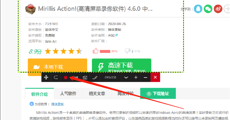 使用上述教程中的操作方法我们就可以通过Mirillis Action这款软件来选取区域录制电脑屏幕了,有需要的朋友赶紧试一试这个方法吧,希望这篇方法教程能够帮助到大家。