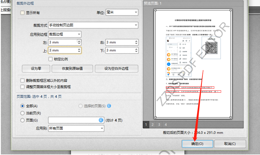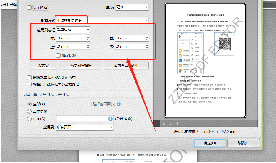 6.根据自己的需求设置好想要裁剪PDF页面的尺寸之后,我们在界面中就可以看到裁剪的预览效果了,点击确定按钮保存这个效果。