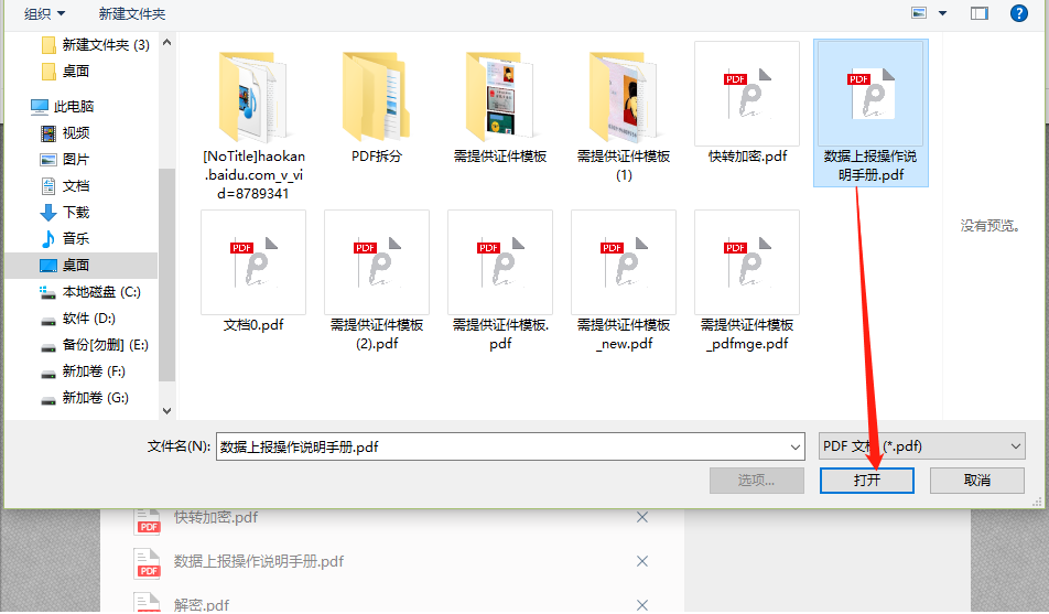 2.点击打开按钮之后下一步会出现一个选择打开文件的界面,我们选中想要打开的PDF文件之后点击下方的打开按钮即可。