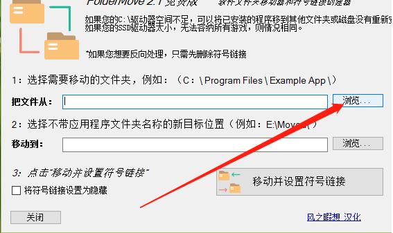 1.首先第一步我们打开软件之后点击“把文件从”这个选项后面的浏览按钮,点击之后可以选择想要移动的文件夹。