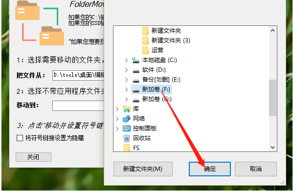 2.点击浏览按钮之后下一步就是在打开的选择文件夹界面中选择想要移动的文件夹了,选中之后点击确定按钮即可。