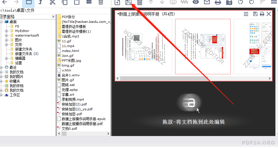 4.根据具体的情况将PDF页面旋转调整到指定的正确方向之后,点击界面上方的保存文件图标即可保存旋转之后的PDF文件。